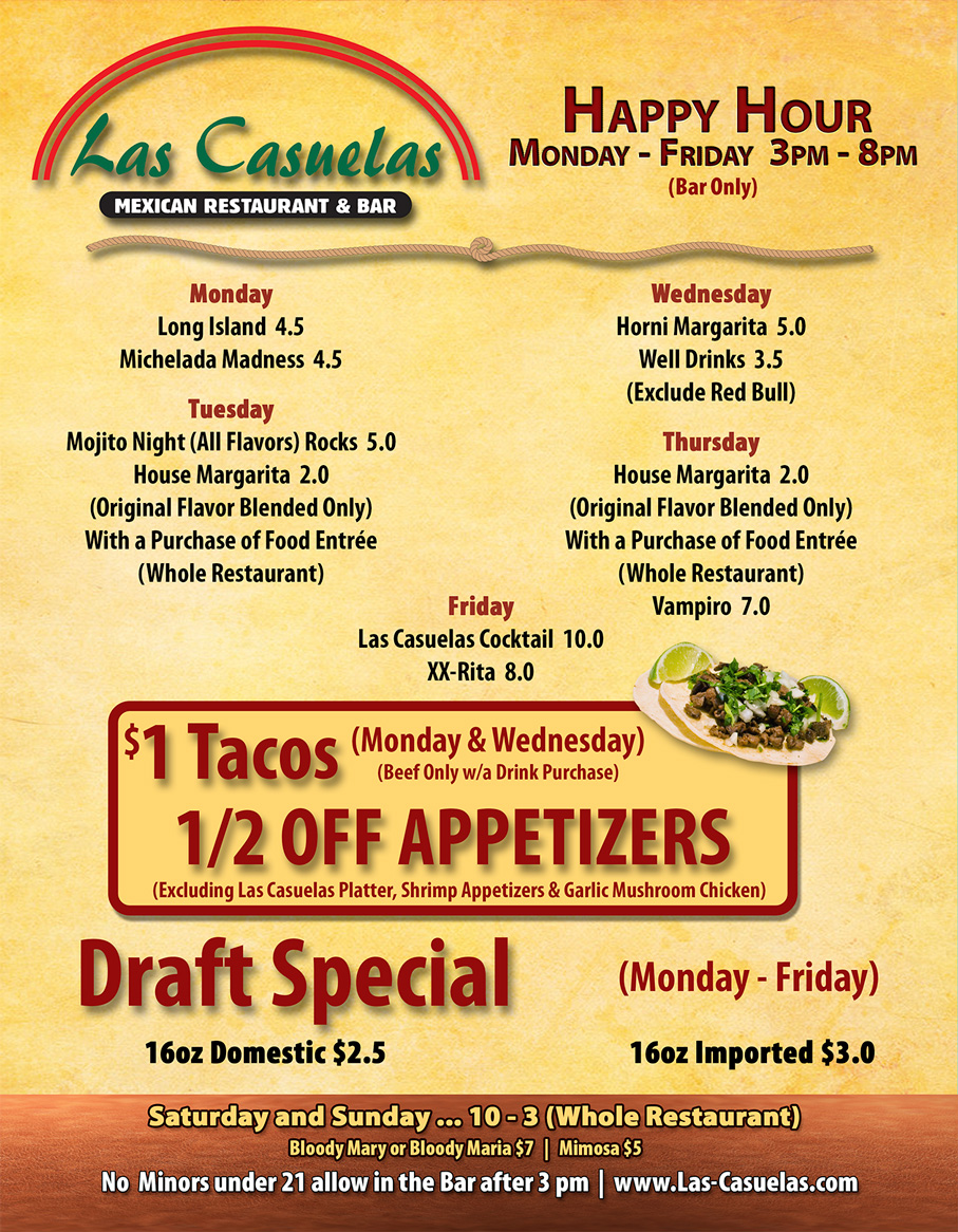 Whether you’re here for a casual lunch or a vibrant evening with friends, Las Casuelas offers a delightful mix of atmosphere, authentic Mexican flavor, and impeccable service—all contributing to a dining experience you won’t want to miss. With ample parking and a convenient location, it’s clearly a local favorite for a reason. So gather your friends and family, and get ready to indulge in a fiesta of flavors at Las Casuelas!